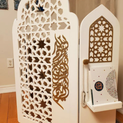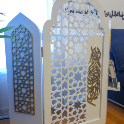Inspiré de l’architecture islamique traditionnelle, il transforme instantanément votre espace en un coin de prière raffiné, idéal pour le Ramadan.